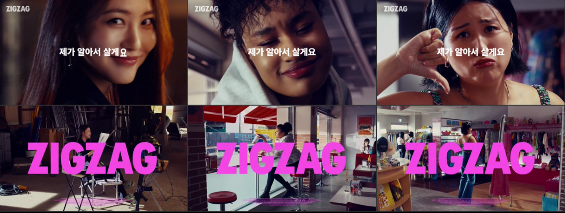 해당 캠페인은 21년도 윤여정 선생님이 모델로 출연하신 지그재그 광고의 연장선상이라고 볼 수 있어요.